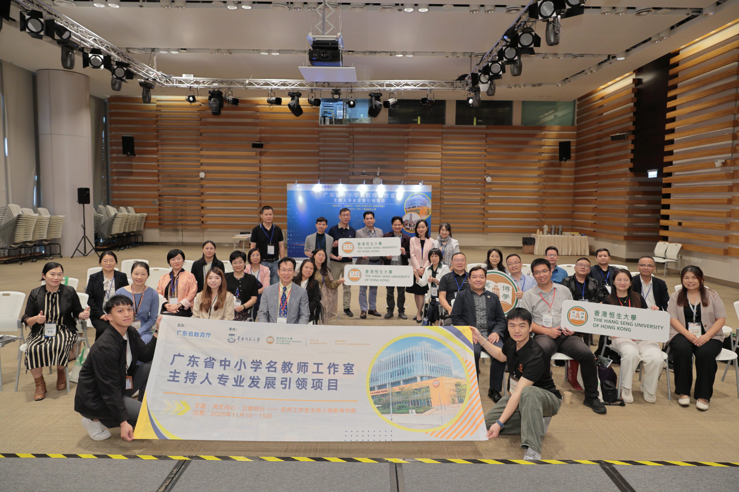 The 2025 Professional Development Leadership Programme for Master Teachers of Primary and Secondary Schools in Guangdong Province commenced its ten-day professional exchange from 10 to 19 November 2025 at The Hang Seng University of Hong Kong (HSUHK). The programme brought together 25 distinguished teacher studio leaders from Guangdong under the theme “Together in the Bay Area, United in Virtue, Moving Forward in Action.”