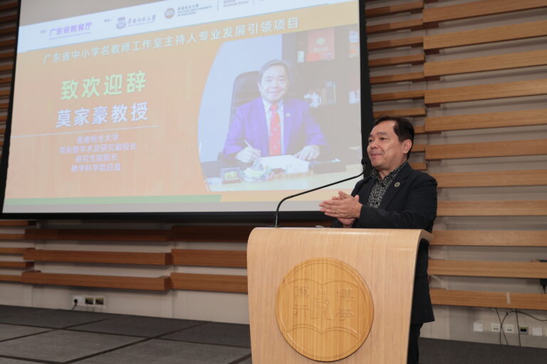 Commissioned by the Department of Education of Guangdong Province and co-hosted by South China Normal University and The Hang Seng University of Hong Kong (HSUHK), this cross-regional initiative provided Guangdong school teachers with a valuable platform to exchange educational ideas and best practices. The programme fostered professional development and strengthened educational collaboration across the Greater Bay Area (GBA) under the “Millions Talent Development Initiative”.