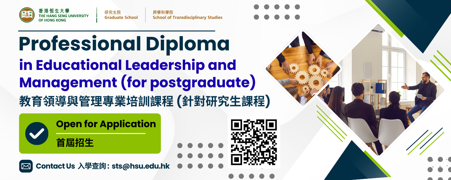 The Graduate School and School of Transdisciplinary Studies at The Hang Seng University of Hong Kong (HSUHK) launches the Professional Diploma in Educational Leadership and Management (for postgraduate). This programme is tailored for both current and aspiring educational leaders who aim to enhance their strategic leadership competencies in the ever-evolving landscape of education.