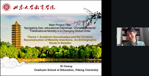 In his presentation, Mr. Ri Gwan examined Chinese students’ transnational mobility in Sweden. Drawing on ethnographic and digital research, he explored how academic and immigration policies shape international students’ educational, career, and life trajectories. He highlighted how students strategically navigate welfare systems, digital communities, and cultural norms such as “lagom” to manage uncertainty and pursue long-term stability, with notable gender differences.