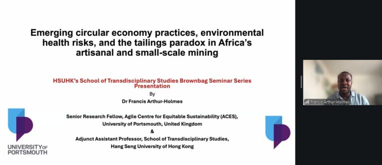 The School of Transdisciplinary Studies (STS) at The Hang Seng University of Hong Kong (HSUHK) held the second session of its STS Brownbag Seminar Series on Friday, 10 April 2026, featuring a presentation by Dr. Francis Arthur-Holmes on the environmental and health risks associated with emerging circular economy practices in Africa’s artisanal and small-scale mining (ASM) sector.